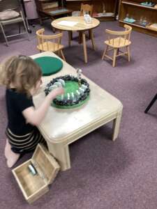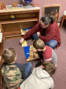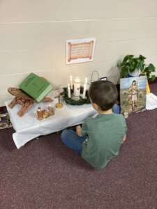 Catechesis of the Good Shepherd is a hands-on method of faith formation based on the Montessori method of learning. Unlike book-based curriculums that use a workbook model with minimal teacher training, Catechesis of the Good Shepherd utilizes a dedicated prepared space for children called the “atrium” and extensively trained catechists. The atrium is filled with child-sized furnishings and manipulative models of people, places, and objects found in Scripture and the liturgy.